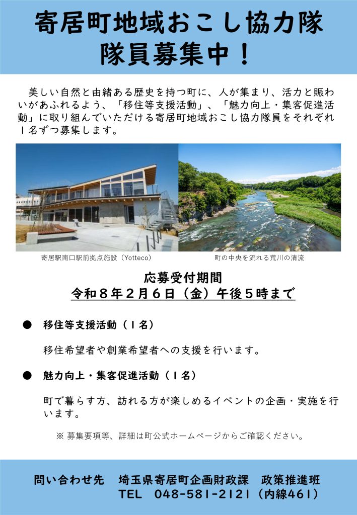 寄居町「地域おこし協力隊」隊員を募集します!(2/6まで)